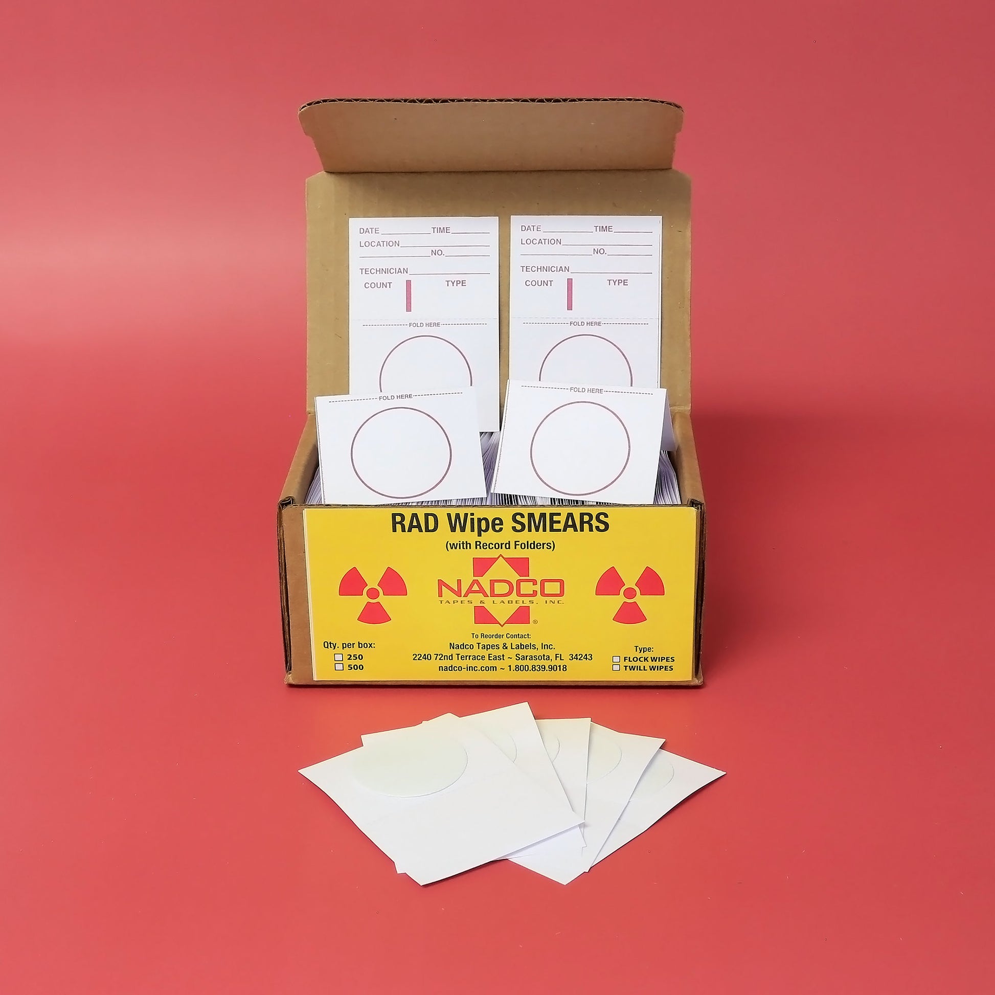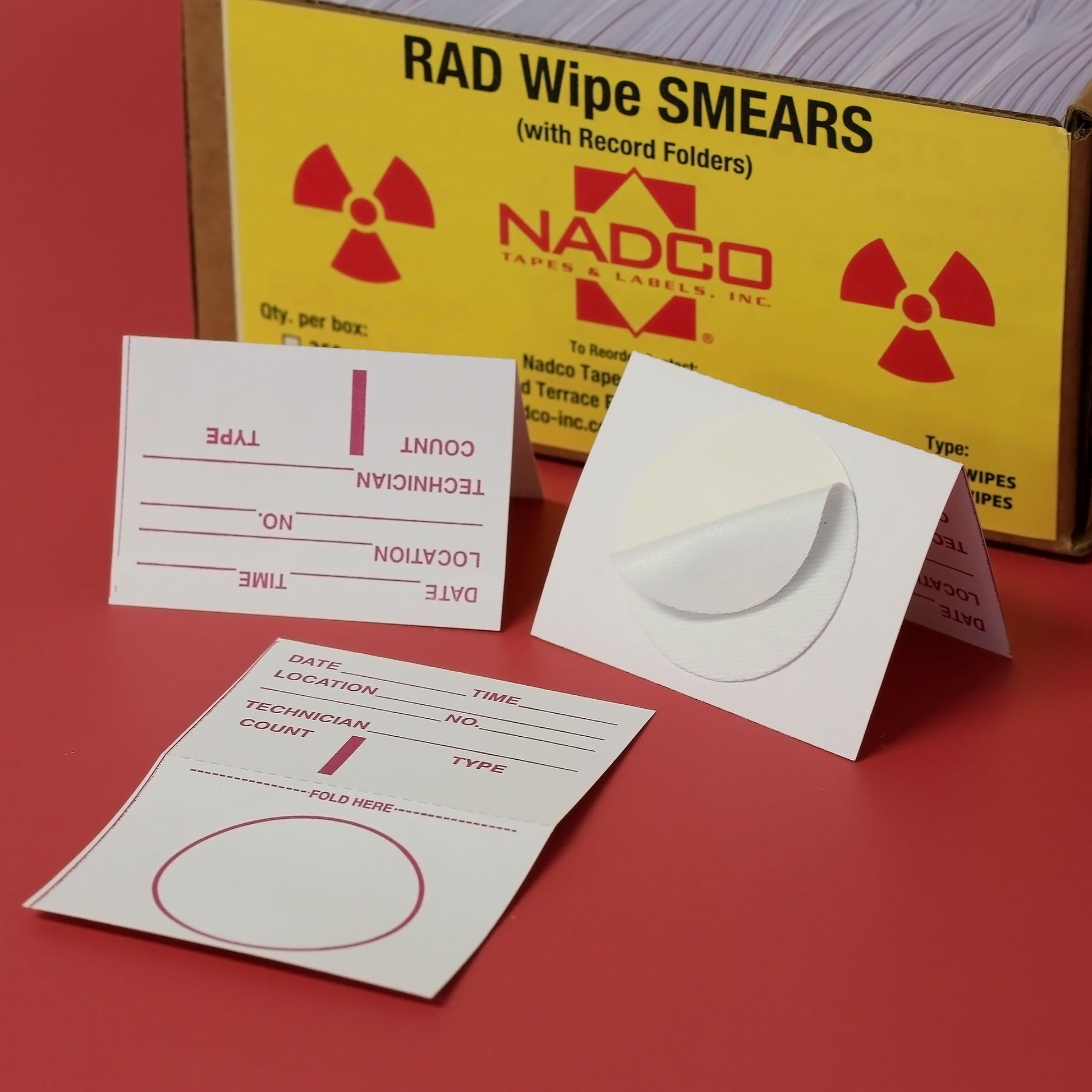 NADCO Nuclear Radiation Wipes (also known as ‘RAD Wipes’, ‘Wipe Spot Pads’ ‘Surface Contamination Test Kit’ or ‘Wipe Test Kits’) are 1.75” pressure-sensitive cloth discs that can be used to perform wipe tests in accordance with NRC and Agreement State Regulations.